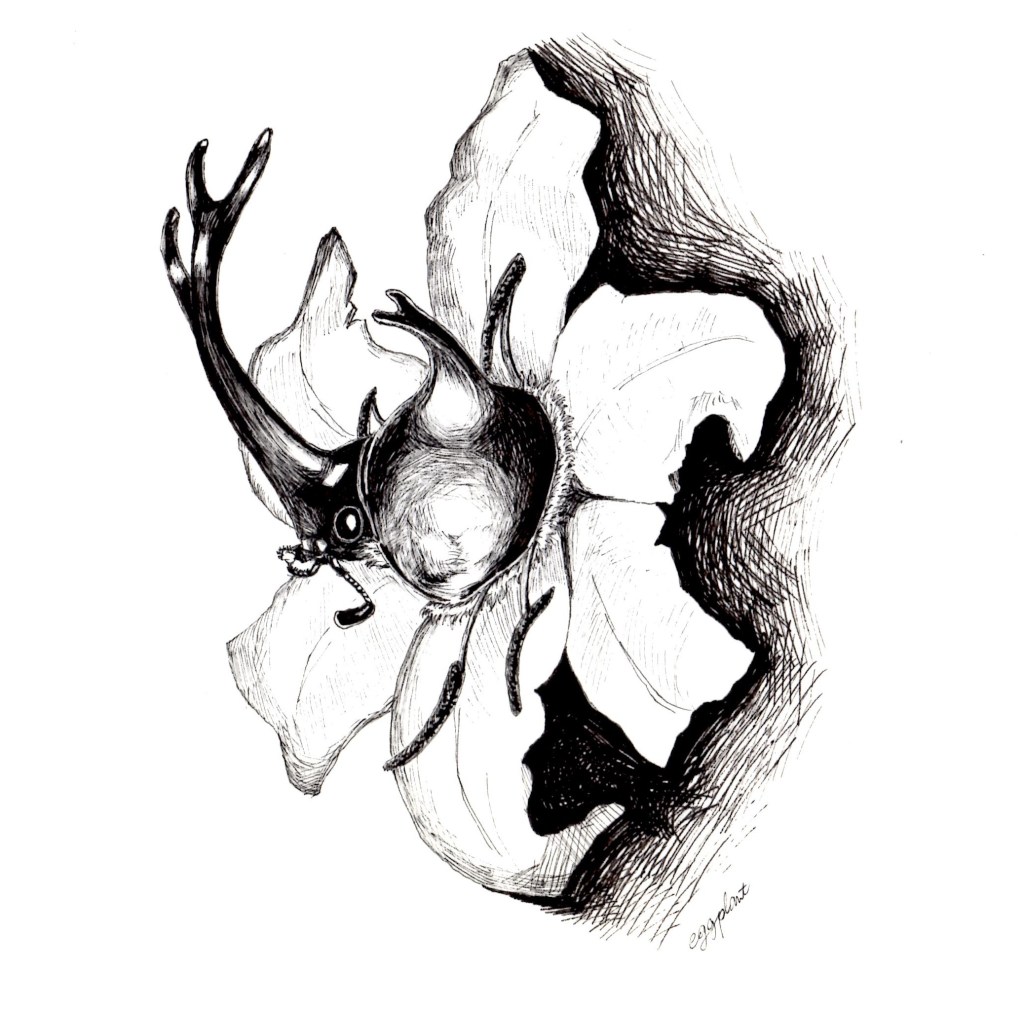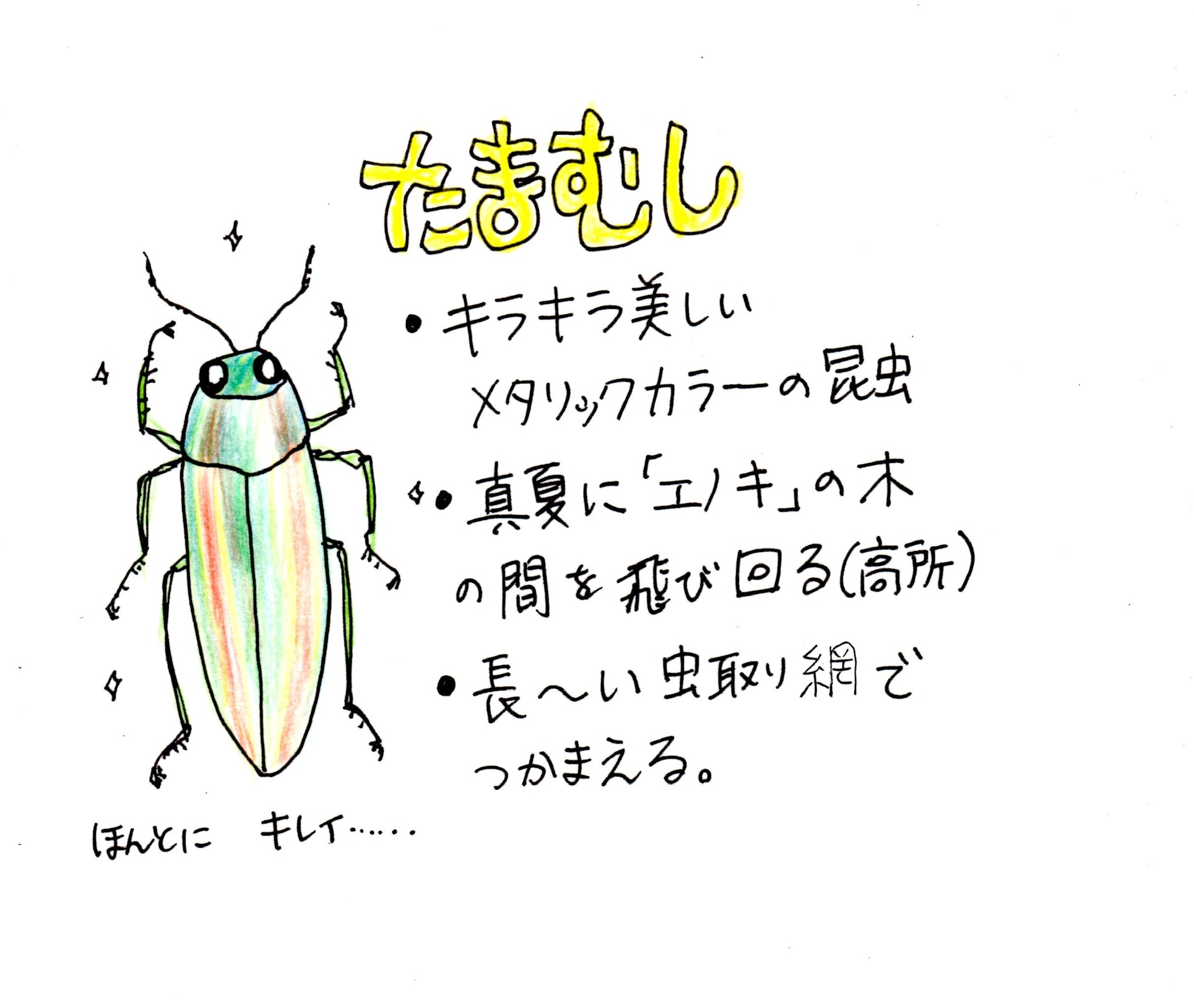 タマムシ: ペン・色鉛筆・写真 (制作期間:1日)