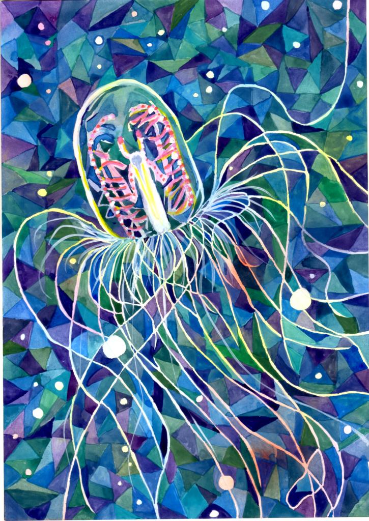カミクラゲ: 水彩絵の具 (制作期間:5日)
